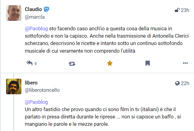 ➡️ In ospedale le hanno detto che moltissime persone hanno il problema di non sentire bene i dialoghi in tv, a causa della musica perenne in sottofondo, spesso a volume alto.