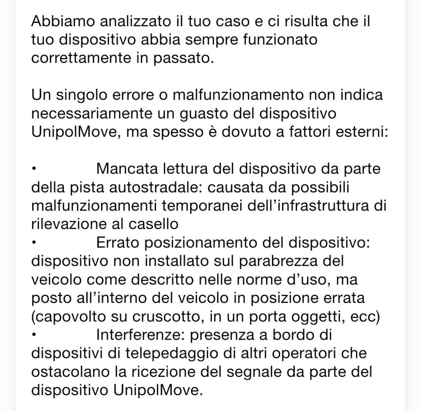 E’ adesso che non funziona! E non è stato un singolo malfunzionamento, ma 3 consecutivi in caselli ed autostrade diverse. Ti pare che non funziona una volta e chiedo assistenza?