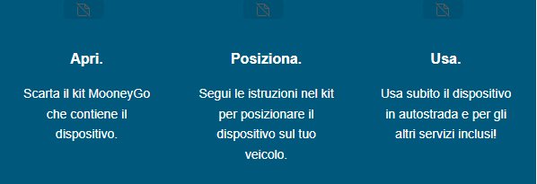 Come raccontato nei giorni scorsi in questo post: UnipolMove mi hai deluso, si cambia sono stato costretto ad abbandonare UnipolMove per il telepedaggio autostradale e quindi, visto che il ritorno da Telepass è fuori questione, ho deciso di richiedere il dispositivo di MooneyGo.