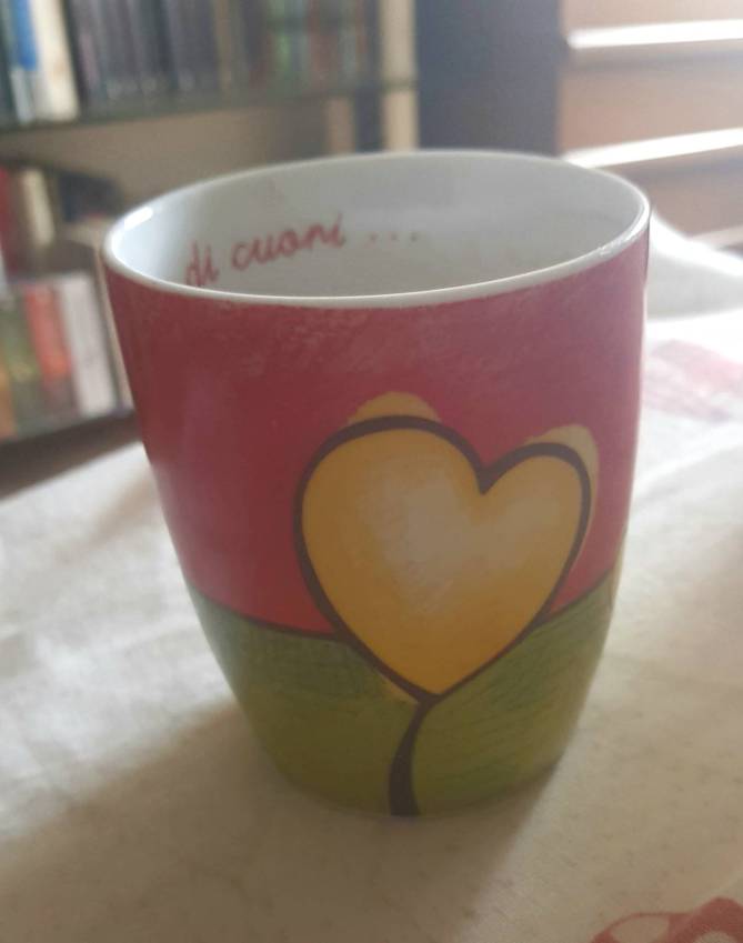 La tazzina “motivazionale” riporta la scritta all’interno: sicuramente c’è anche una decorazione esterna, ma è la frase in corsivo rosso che, ogni giorno, ti rimette in contatto con la vita.