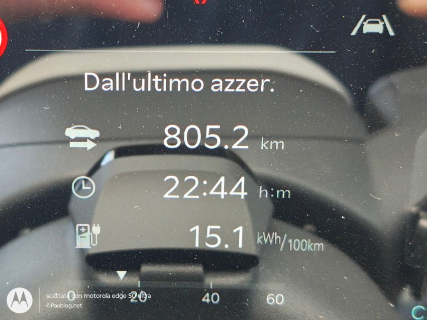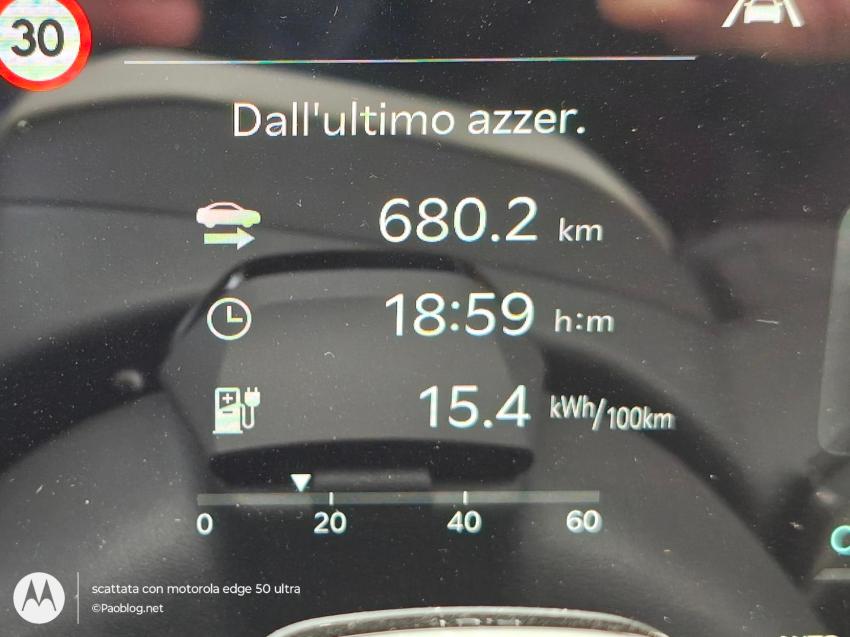 1° novembre 2025: Corbetta – Lesa – Corbetta, 125 km. in totale, extraurbano e superstrada. Consumo medio 13,6 kWh/100 km.