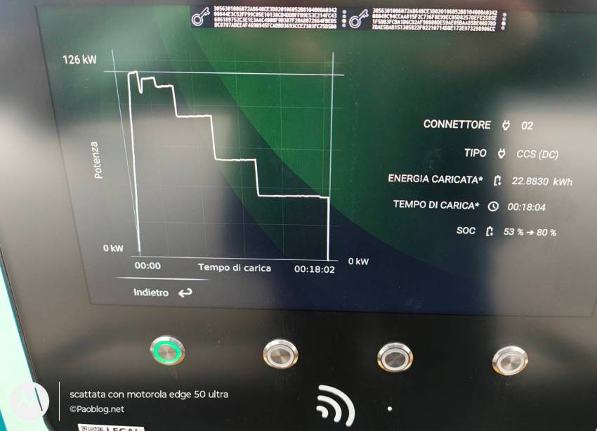 Giorni fa, dovendo installare il certificato del Plug & Charge (ne parlo qui) ho ricaricato ad una colonnina di Electra da 300 kW (150 a testa se sono collegate due auto).