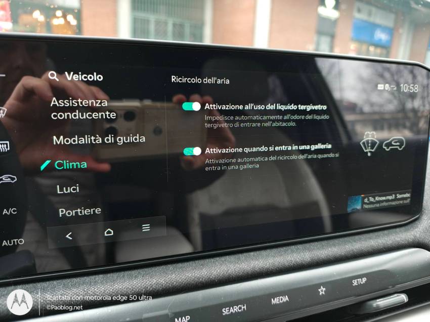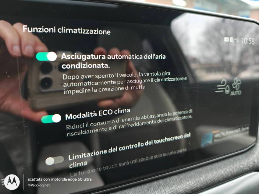 L’asciugatura automatica del climatizzatore è una bella funzione; anni fa avevo letto che dopo aver usato il climatizzatore era meglio spegnere l’impianto alcuni minuti prima e poi restare fermi a motore acceso per qualche minuto per far evaporare l’umidità ed evitare le muffe; in questo caso l’auto gestisce da sola l’asciugatura.