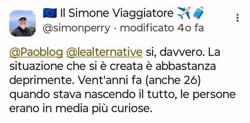 Io sono abitudinario, tuttavia se è il caso so adattarmi ed infatti credo di essere l’unico ad avere mollato da anni il trio Twitter, Instagram, Facebook.