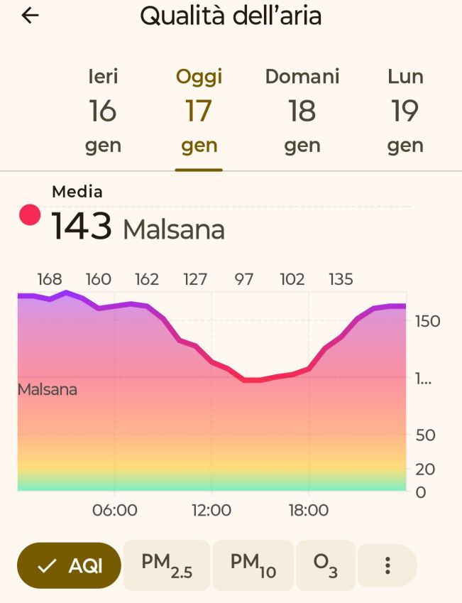 Pioggia leggera che allo smog gli fa un baffo ed infatti l’indice AQI è sempre elevato ed io, che sono allergico e sensibile, sono in sofferenza.