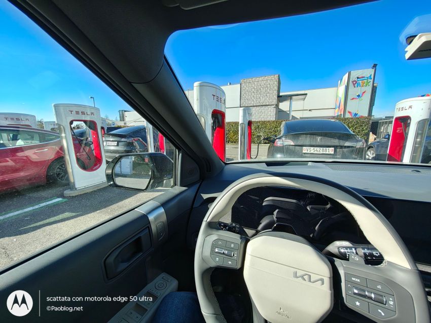 In realtà è stata una ricarica di pochi minuti, giusto per provare un SuC di Tesla e la App, visto che il percorso pianificato con ABRP per andare ad Ortisei prevede una sosta a Trento, ad un SuC Tesla.