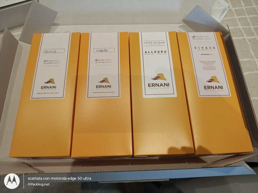 Sono riuscito a trovare del caffè a tostatura media ad un prezzo adeguato e quindi ho ordinato due confezioni assaggio (4 tipologie) in modo da “farci la bocca” e poter poi scegliere quello preferito.