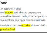 Sarei curiosa di chiedere a chi ha scritto questo testo perché ritenga che gli anglicismi usati siano preferibili a luogo, biglietto, bevanda e piatti (o assaggi, se le porzioni sono … Continua a leggere